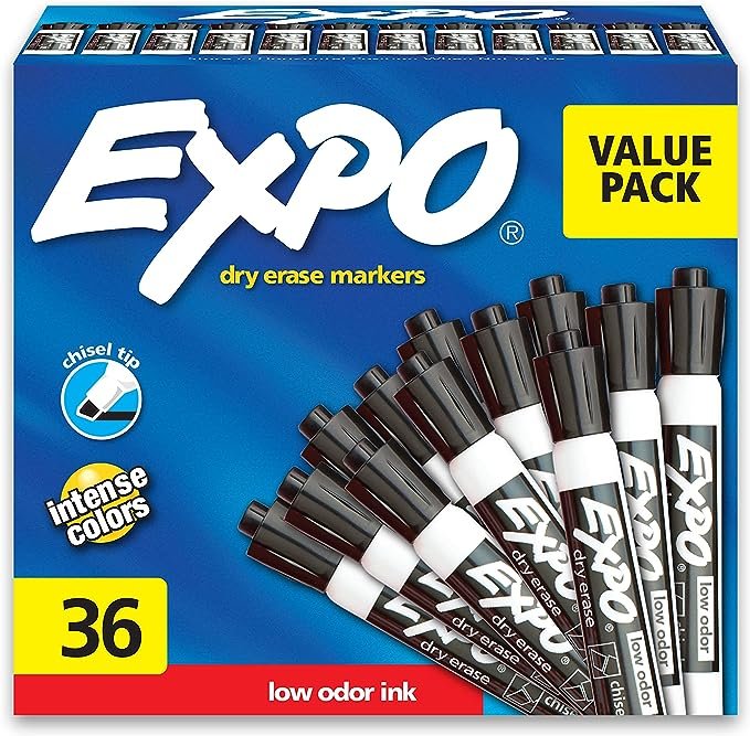 EXPO Low Odor Dry Erase Markers, Chisel Tip, Black, 36 Count